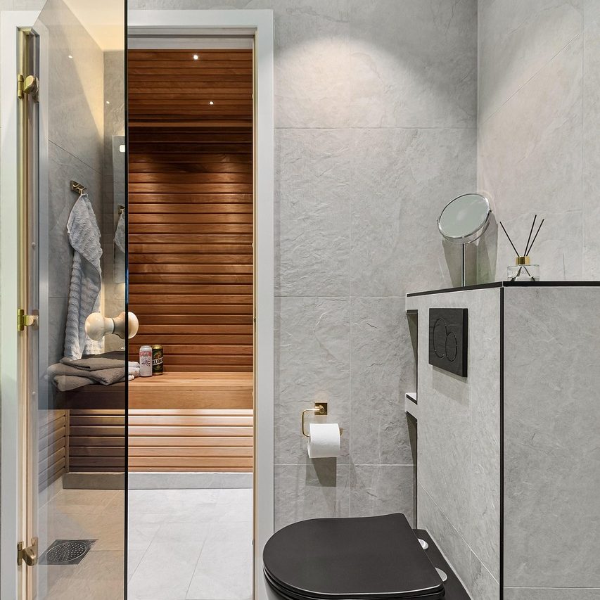 Makellose Verarbeitung von großformatigen Fliesen für eine reduzierte, elegante Raumwirkung.